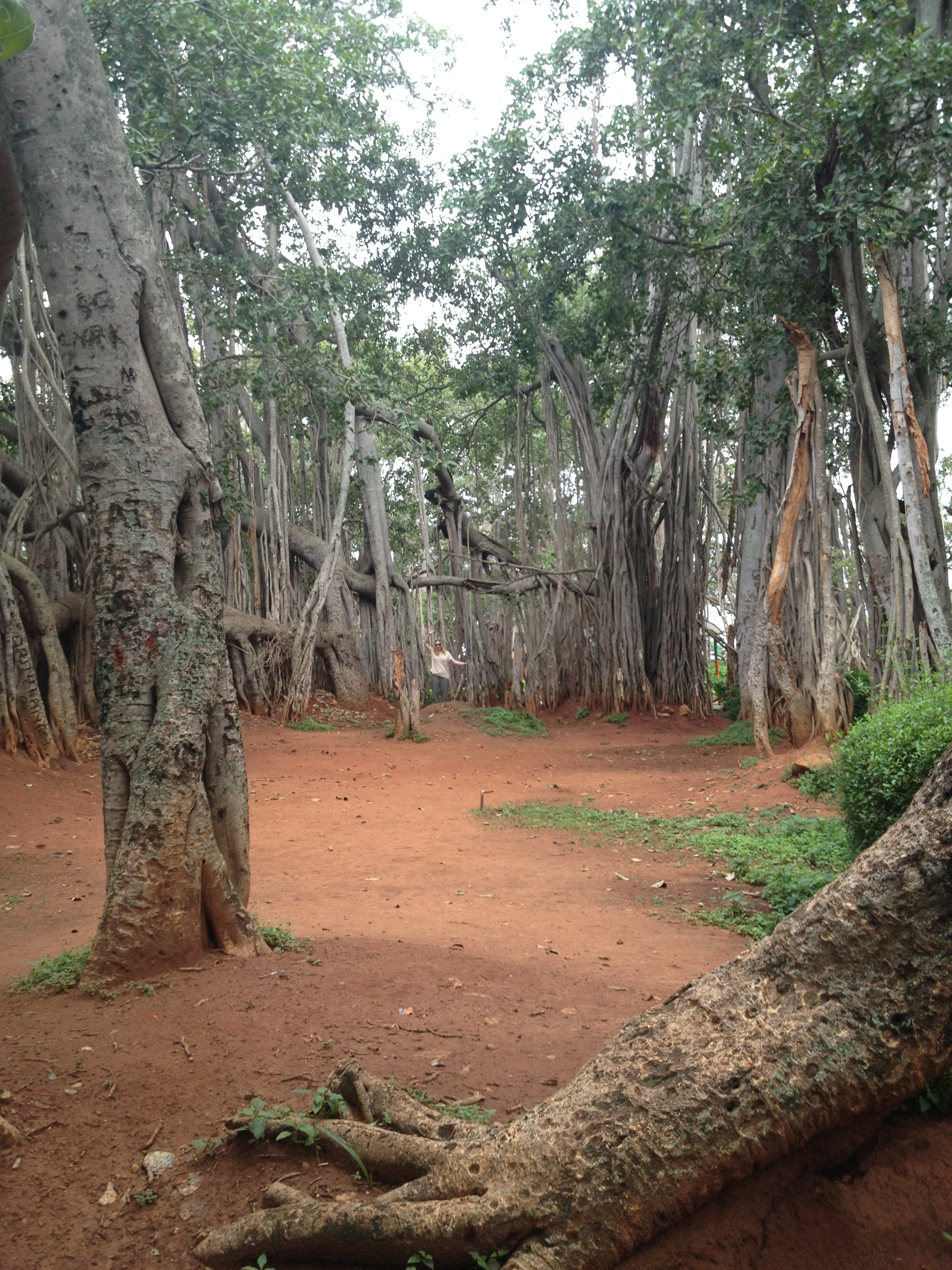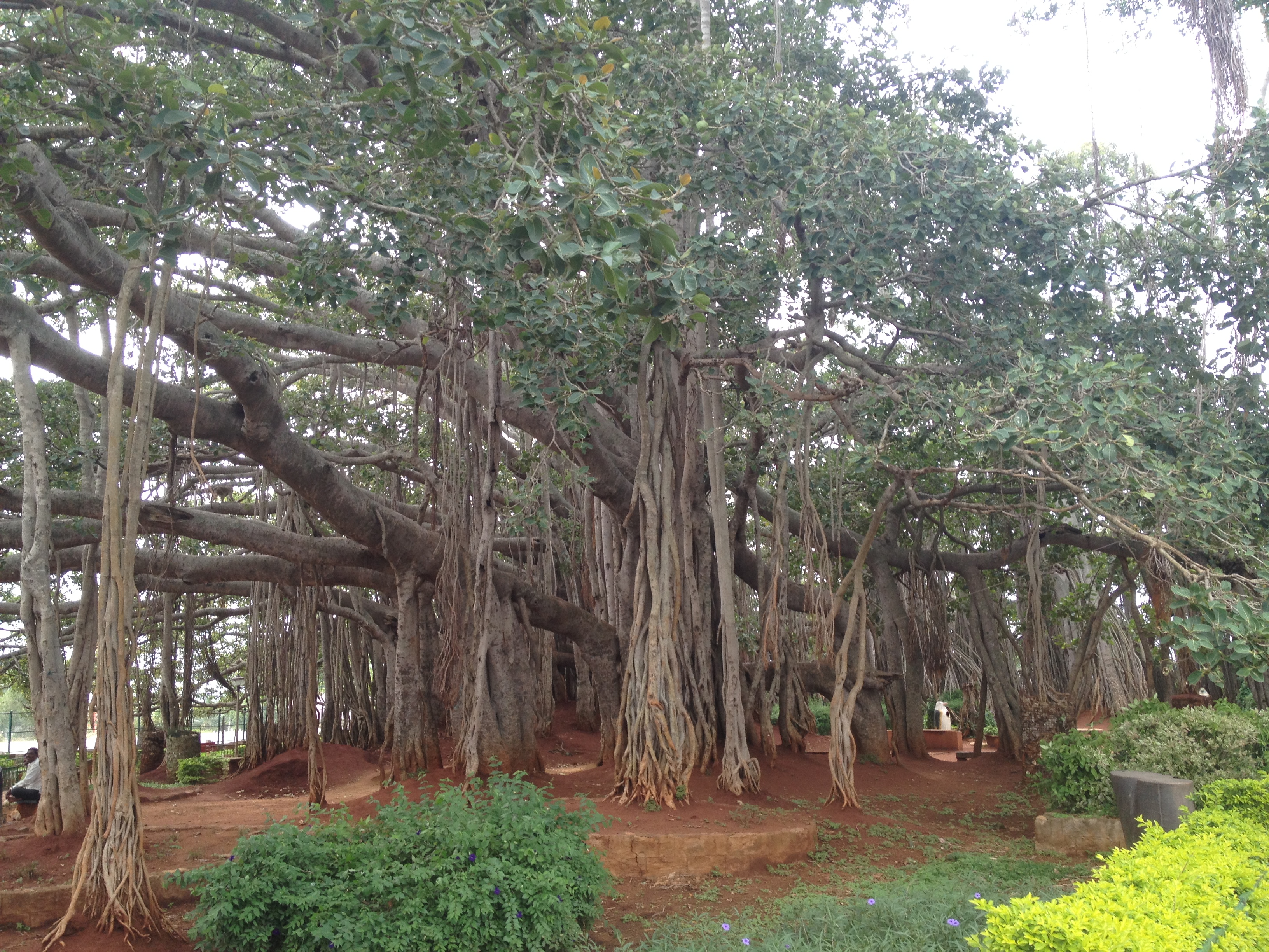 On my first road trip out of Bangalore, we stopped by the Big Banyan Tree. Well, its proper name is the “The Famous Big Banyan Tree at Kethohalli of Bangalore South Taluk.” (Big name for a big tree…) Reportedly, the 4th biggest in the world, it covers appx. 5 acres. It is 400 years old with a height of 95 ft.