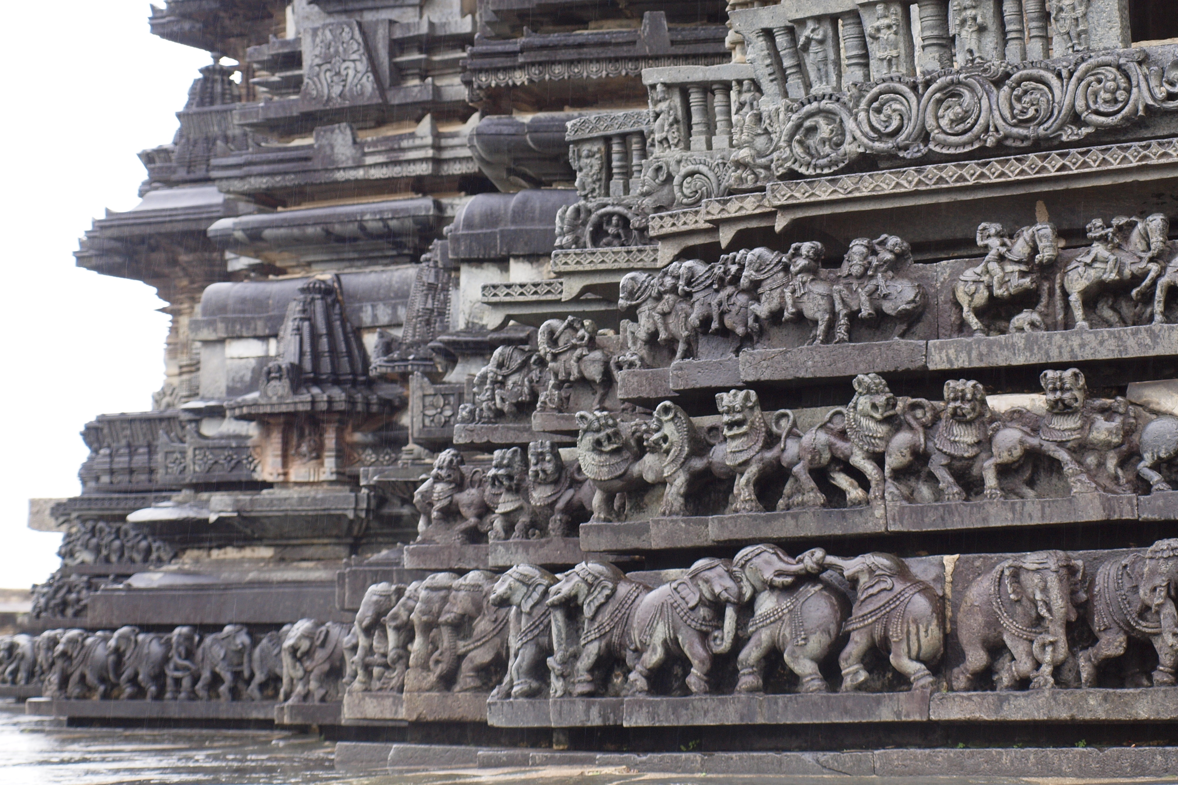 The temple sits on a base in the shape of a star and the exterior is craved in amazing detail. There are bands of elephants, lions, mounted horses, dancers, musicians, etc.