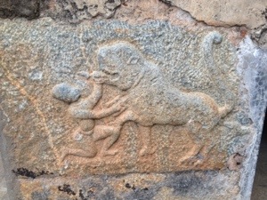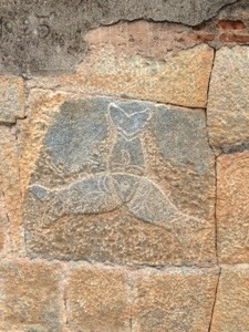 Although at first glance the walls seem to be made of smooth stone & unadorned (aside from the doorways), in fact random stones have images carved into them. I tried to spot as many as I could: