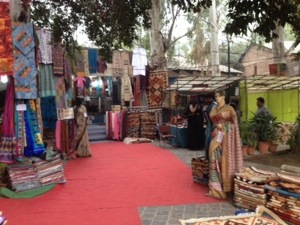 Last Saturday I meet my friend A in her home town of Delhi. We visited the Dilli Haat, which was showcasing textiles. Needless to say, I’m now the proud owner if 3 new large scarves (“dupatta”) of various fabrics. But I resisted the beautiful patchwork & embroidered Kantha sari, like the one on this mannequin…. I already have a Kantha dupatta, which I know I’ll wear much more often than a sari (but that sari was hard to resist!)